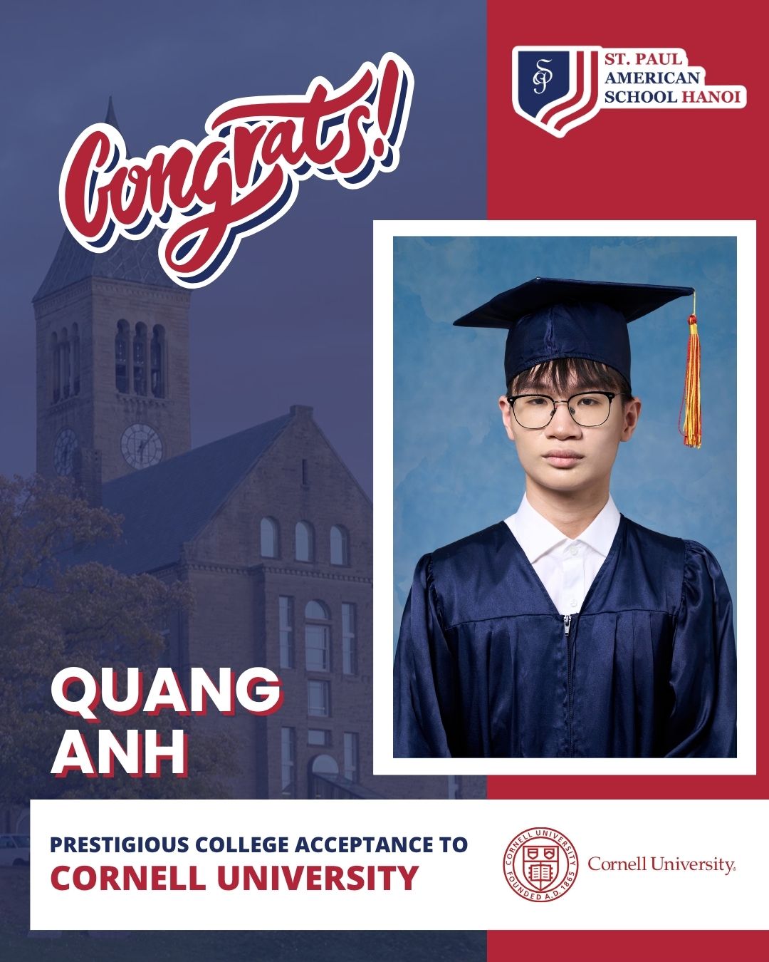 Ngôi trường đã làm rất tốt vai trò chăm sóc các con, giúp các con trưởng thành về cả học vấn, cảm xúc, và xã hội. Đây là một trong những lý do lớn khiến các con có thể phát triển mạnh mẽ khi sống xa quê hương. Tôi yêu cách trường vừa là một ngôi trường Mỹ vừa mang đậm chất quốc tế.